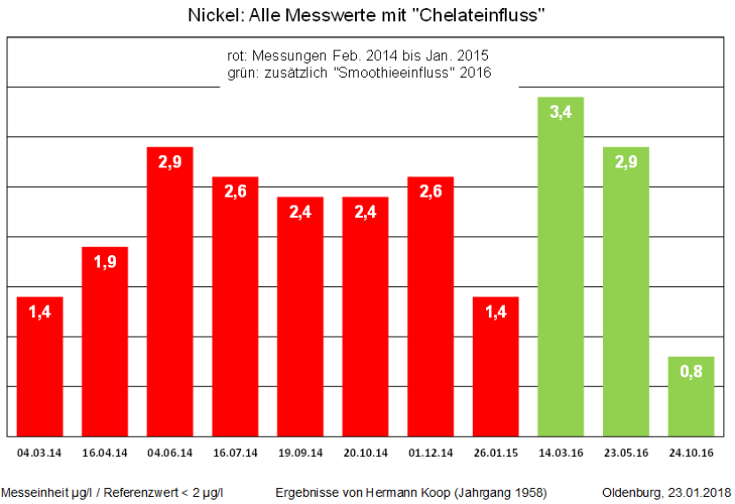 Ergebnisse von zwei Chelattherapien (Entgiftungen)
