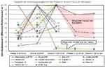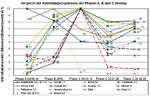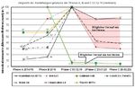 Für die Darstellung der X-Achse wurde die einzelnen Phasen A, B und C dargestellt, ohne einen zeitlichen (linearen) Maßstab abzubilden. Die Phase C ist auf gesplittet auf die einzelnen Provokationstage. Die für die Berechnung benötigten höchsten Intoxidationswerte (100 %) sind in der Legende aufgeführt.