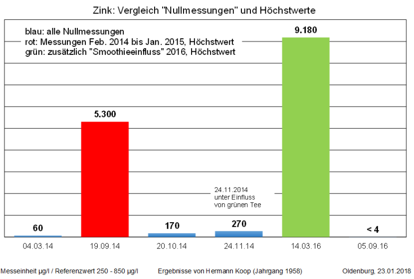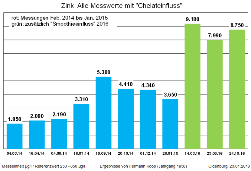 Ergebnisse von zwei Chelattherapien (Entgiftungen)